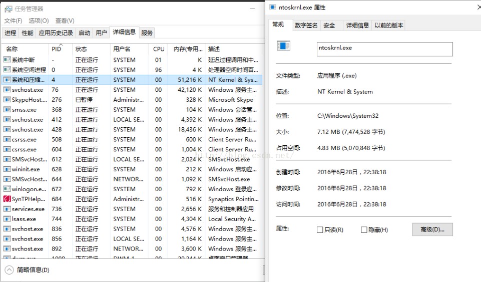 发现是system占用,右键属性看详情是ntoskrnl.exe,在服务里找到对应的服务停止掉它